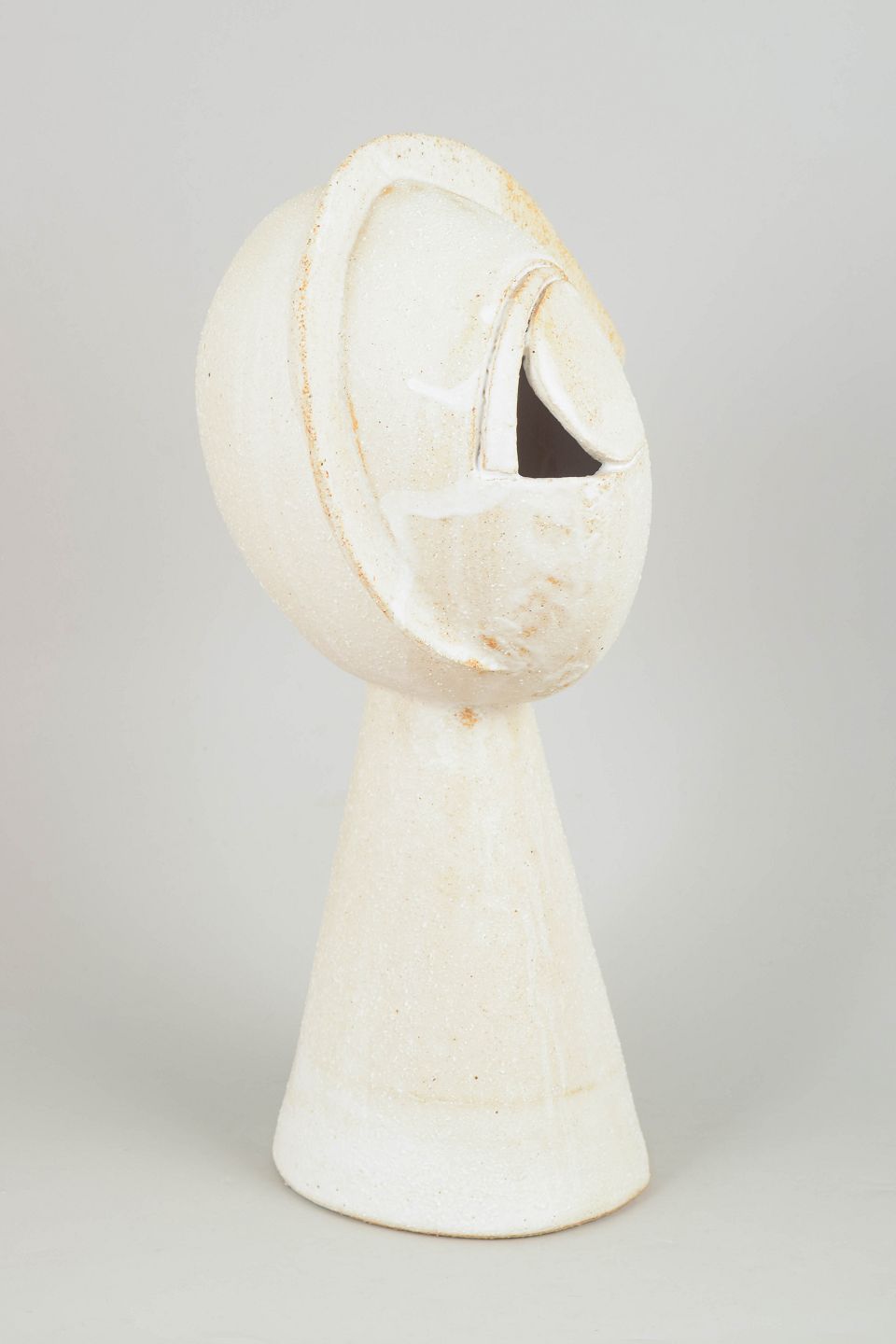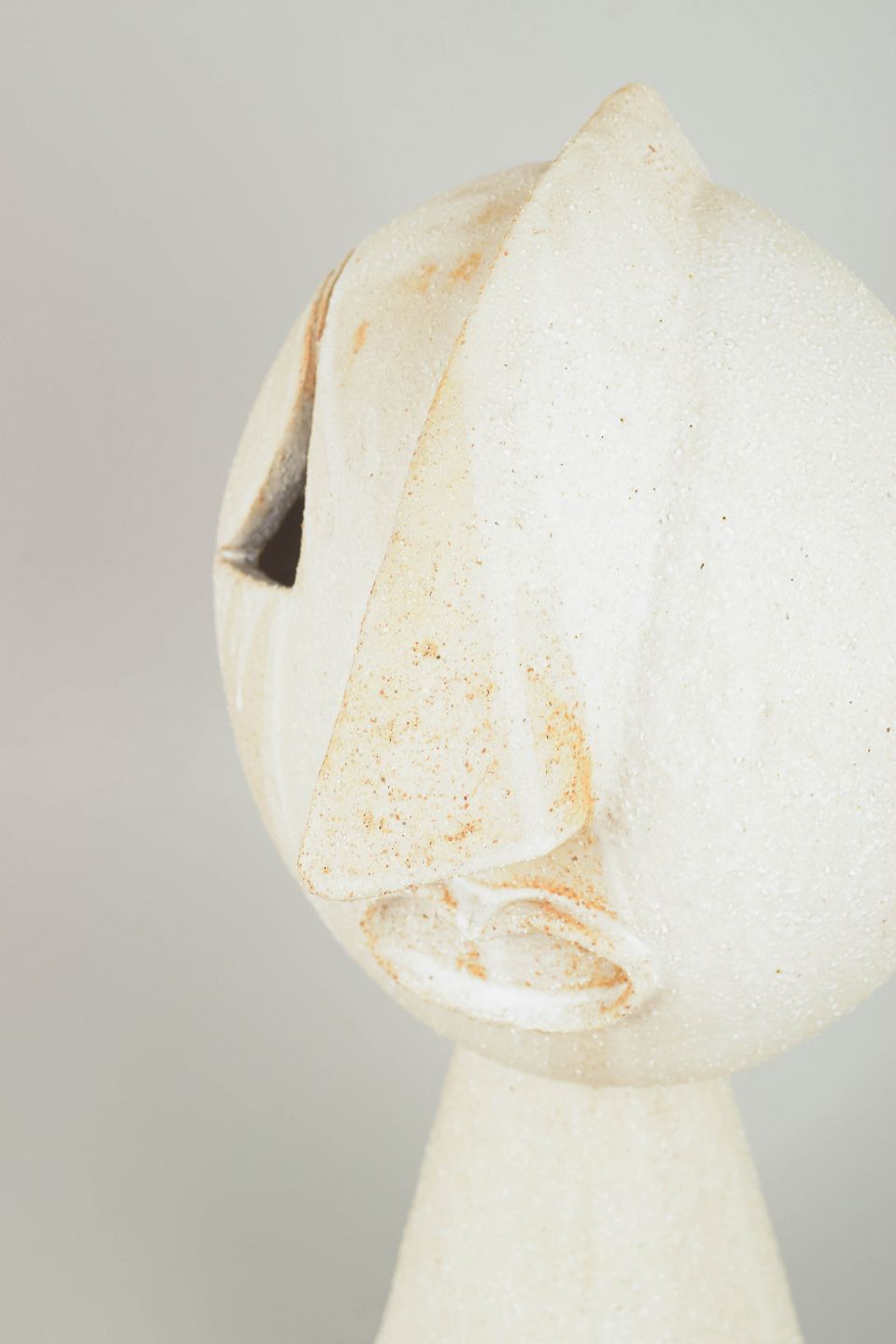 Christina Muff, dansk samtidskeramiker (f. 1971). Stort kubistisk unika ansigt med cremehvid mat glasur og farvede glasurløbere. "Fun times in moonshine" from the kilnfolk series.
