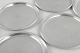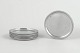 Sæt af otte flaskeunderlag i tin med riflet kant og enkelt art deco formsprog. Model 2634.