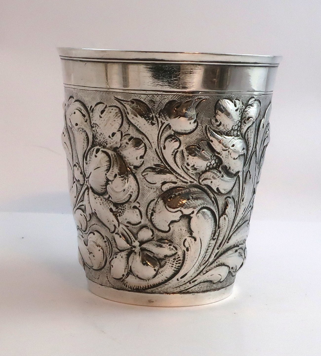 Jørgen Friis, Randers (1739-1790). Stort sølv bæger. Højde 11 cm. Diameter 10 cm.