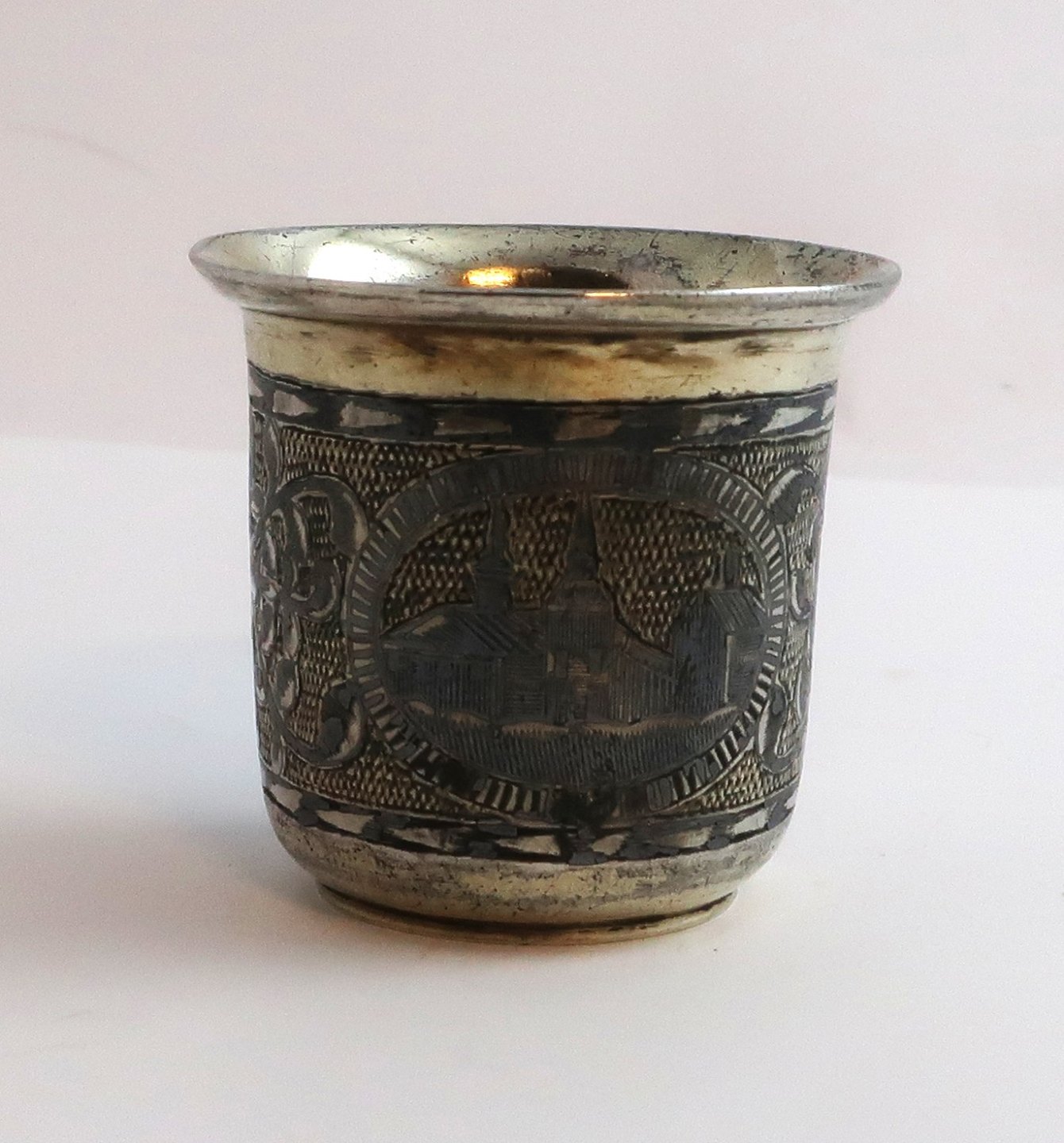 Rusland. Lille sølv bæger med niello (84). Højde 5 cm. Diameter 5,1 cm. Produceret 1833