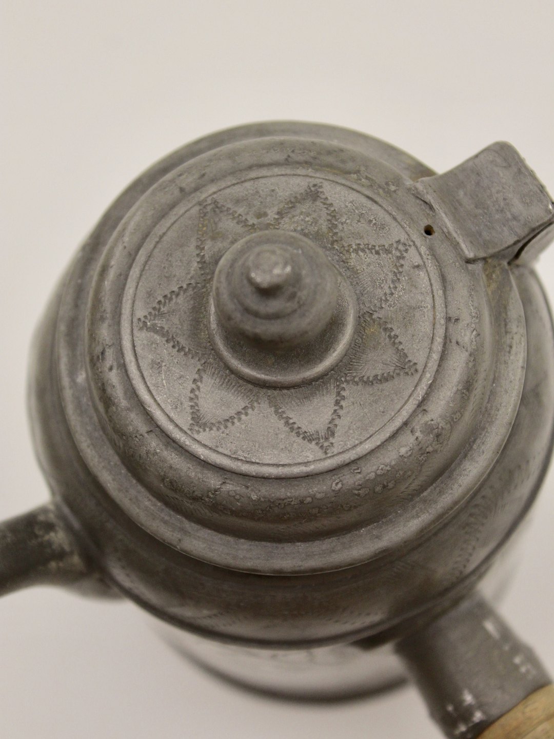 Tin kaffe potte med stjært H. 17 cm. 19.årh. Nr. 358667
