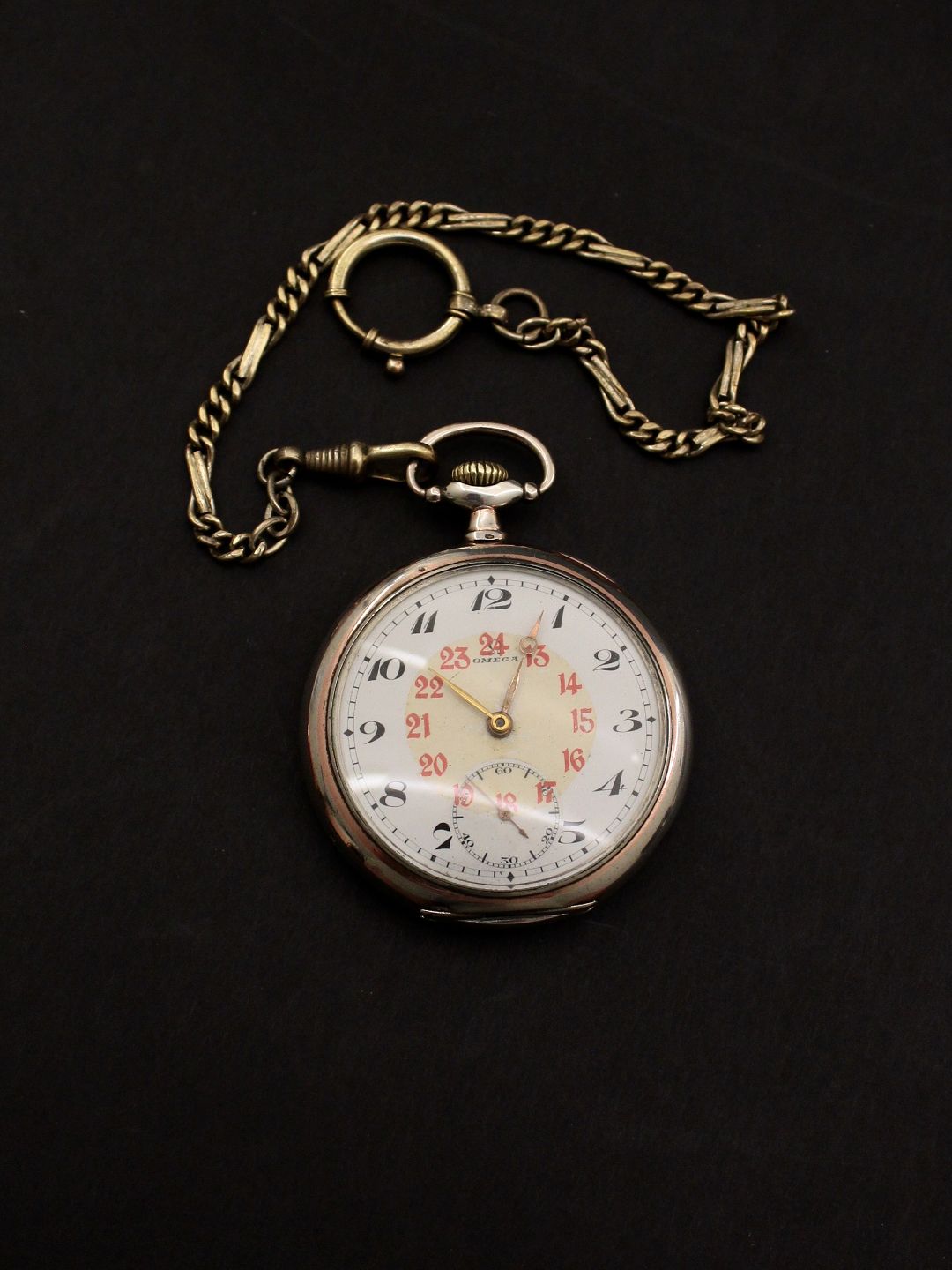 Sølv lommeur med kæde uret går men trænger sikkert til eftersyn. emne. 611397