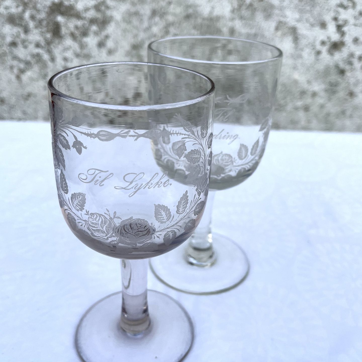 Memorial glass, “For remembrance” & “For happiness”, 16cm high, 7.5cm in diameter * Nice condition *