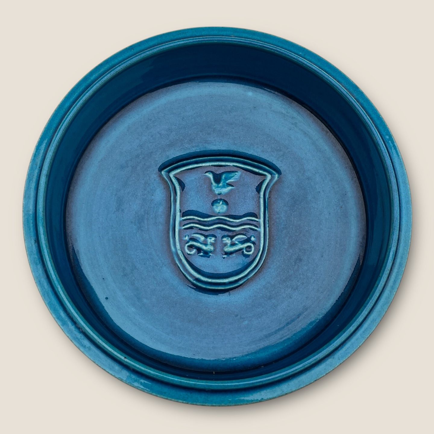Kähler ceramics, Blue Glazed table dish with decoration, 19 cm in diameter, 5 cm high, No. 301- 20 HAK *Nice condition*
