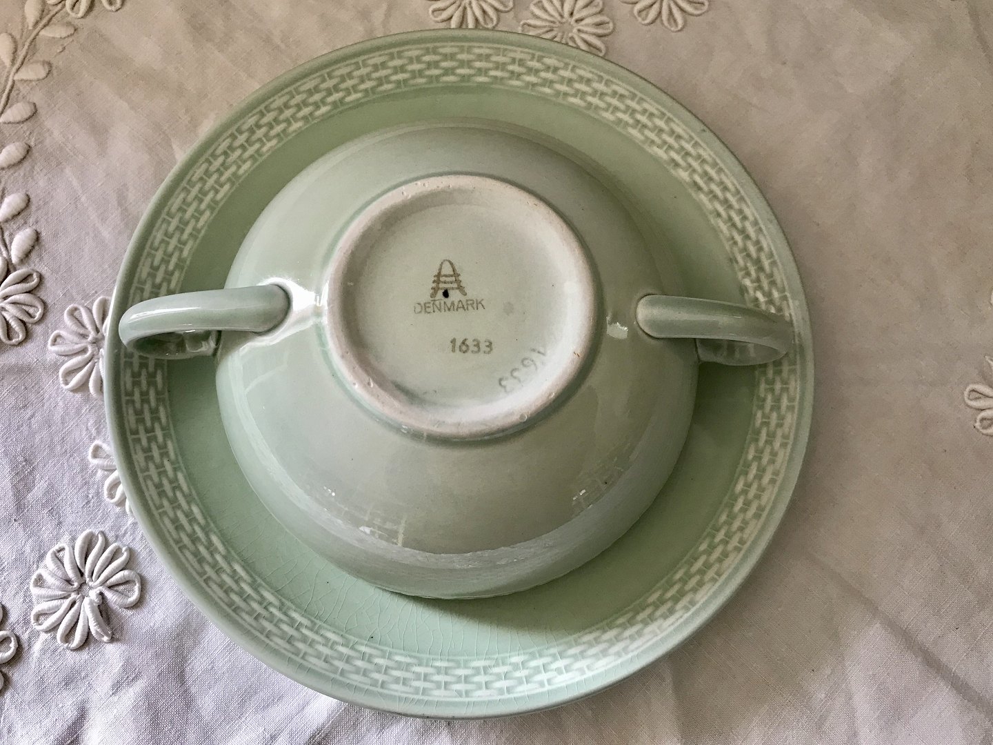 Royal Copenhagen, Aluminia, Victoria ll stelform, Arresø, Bouillonkop, 6,5cm høj, 23,5cm i diameter *Med Krakeleringer*