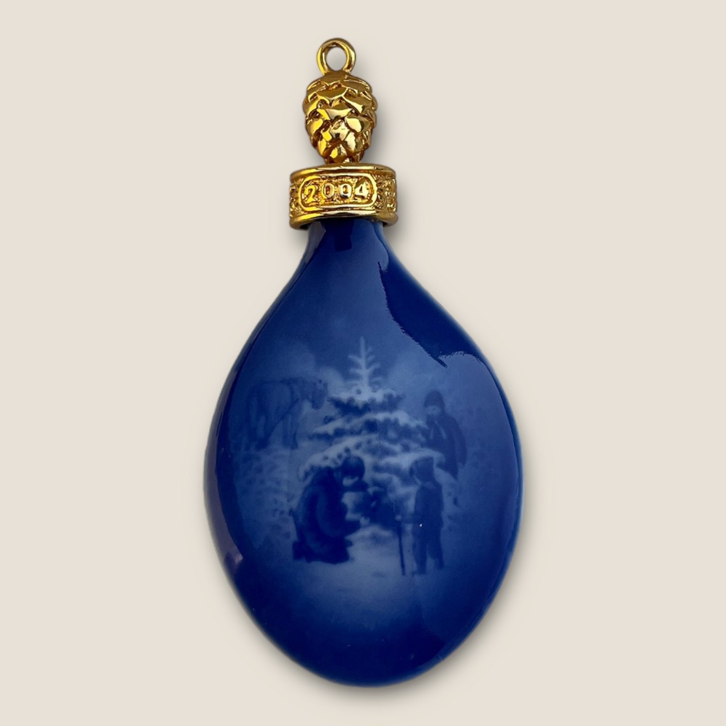 Bing & Grøndahl, Juleophæng, Juletræet fældes, 9cm høj, Design Jørgen Nielsen *Perfekt stand*