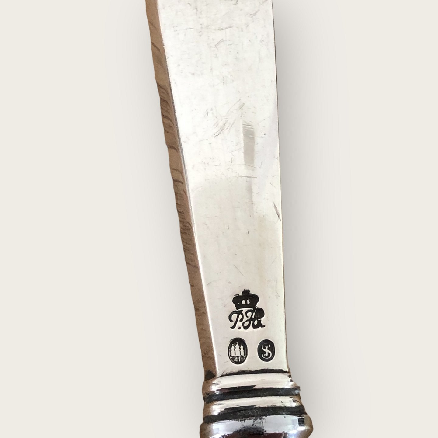 Øloplukker i sølv (tretårnet, 830S) og stål, Har lidt afskalninger på ståldelen øverst (se foto), længde 12cm.