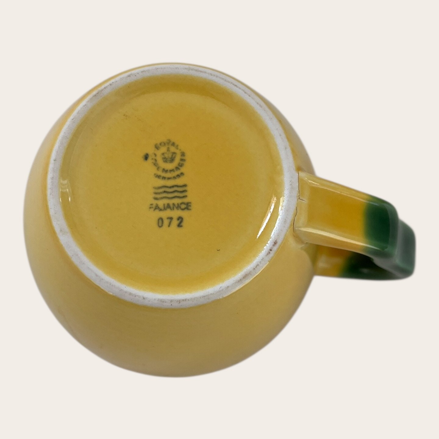 Royal Copenhagen, Aluminia, Ursula, Kaffekop Gul/ Grøn #072, 1. sortering, 7cm høj, 10,5cm bred, 8,5cm i diameter, Design Ursula Munch Petersen *Pæn stand*
