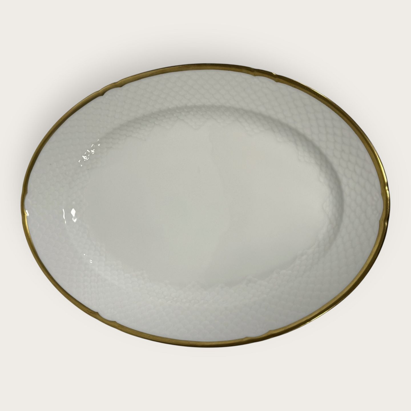 Bing & Grøndahl, Aakjær, Hvid porcelæn med guldkant, Stort serverings fad # 15, 41x28,5cm, 1.sortering *Pæn stand*