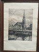 Radering af Søren Frank - Budolfi Kirke set fra Gammel Torv, Aalborg. |