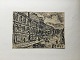 Oliekridt tegning af Peter Holm - Udsigt ud over by. |