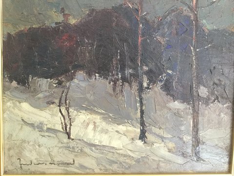 Anders Norre (1899-1960): Fra Vinter Sandstormen. Olie på lærred. Titel bagpå blindramme. "No 39" bagpå lærred Sign.: Anders Norre. Nyere ramme. 41x51 (48x58)