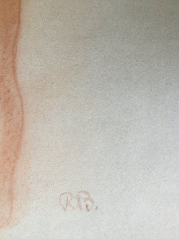 Robert Büchtger (1862-1951): Studie af nøgen pige. Rødkridt på papir. Sign.: RB Uden ramme. Bladet måler 52x39 20622