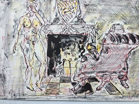 Frans Kannik (1949-2011): Erotisk komposition 1998. Litografi på papir. Sign.: Frans Kannik 1998. Eget arbejde (EA) Uden ramme. 22½ x 31