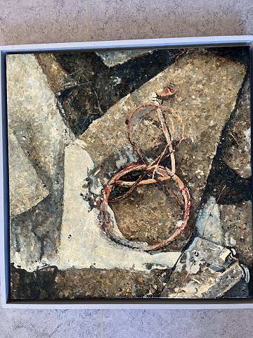 Mogens Nielsen (født 1950): Komposition "Lampeholder" 1997 Olie på lærred Sign.: Monogram bagpå samt Mogens Nielsen -97. 49x48 (53x52)