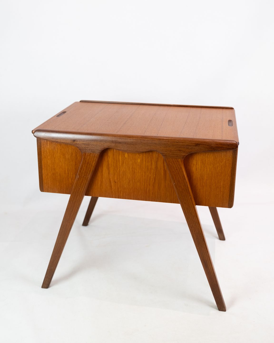 The teak tree is known for its warm color and natural beauty, which makes it a popular material in Danish furniture design in the 1960s. The sewing table will likely have a lovely glow and a distinctive pattern in the wood that adds a warm and welcoming atmosphere to any room.
