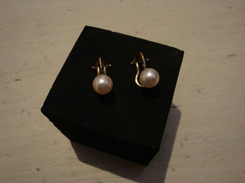 SolgtØreklips i 14 kt med kultur perle. Stempelt CH 585