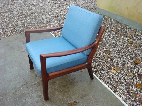 Solgt1 hvilestol tilbage. Dansk design tegnet af Ole Wanscher. Stolen er i meget fin kvalitet i en smuk blå farve.