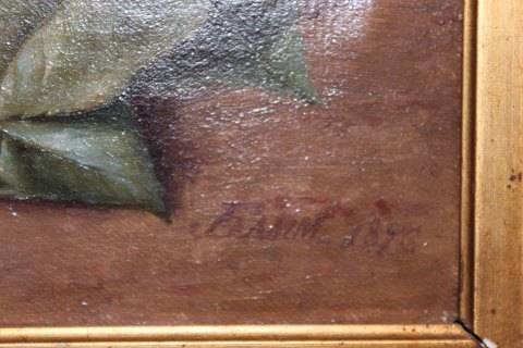 SoldPainting with flowers and fruit motif painted in 1876 by the Swedish artist Johan Frederik Damn. The painting is framed in a very beautiful gold / silver frame. Height of the painting includes frame 72 cm * width 60 without frame 55 * 42 cm. It is in very good condition and in good condition. Stamped OD Sehieltueds. Large Kjøbmagergade 42 artisans born in Gothenburg 1820 death in Helsingor 1894