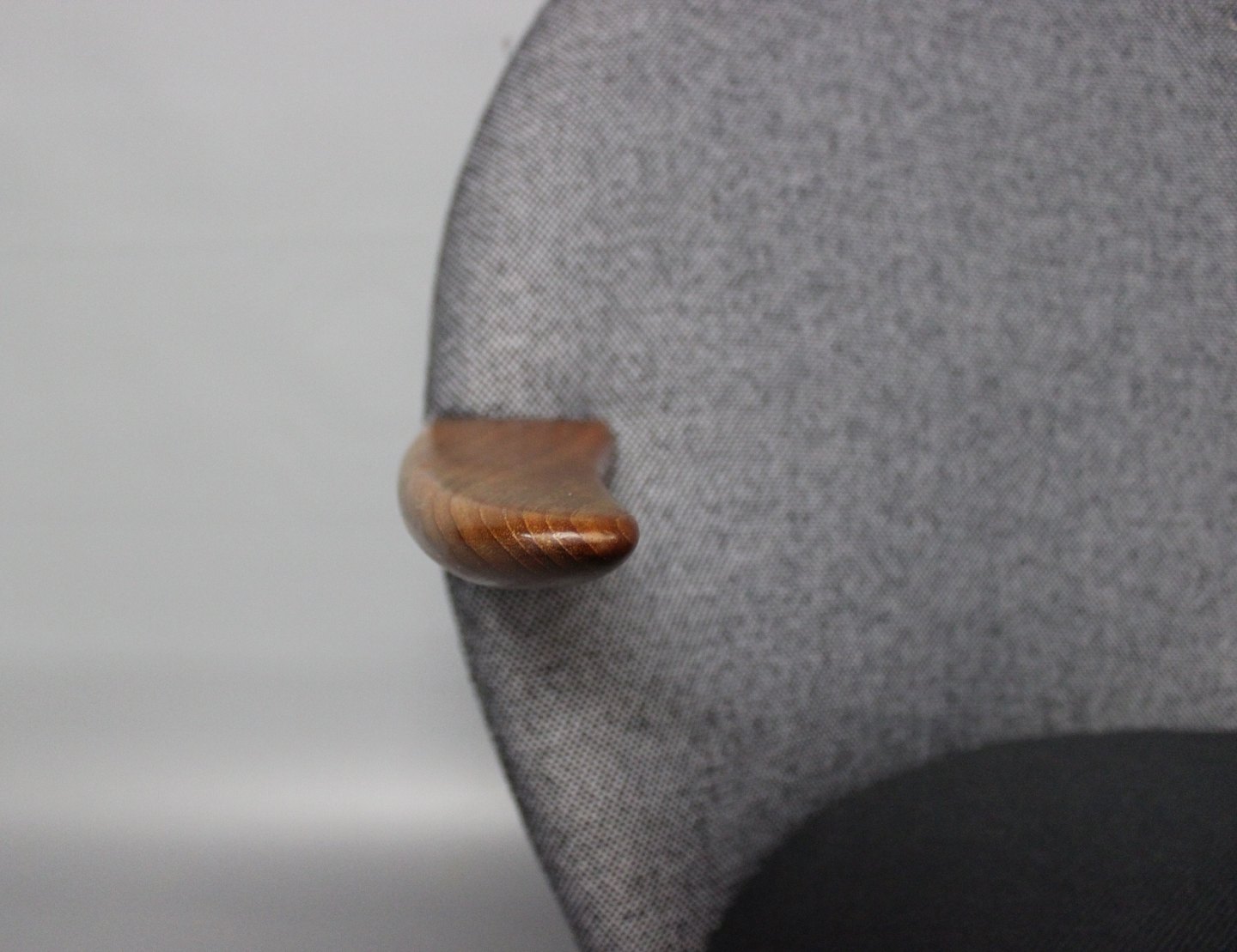 SoldEasy chairs in teak and upholstered in grey Hallingdal wool designed by Kurt Olsen for Glostrup furniture factory in the 1950s. The chairs can be sold separately.