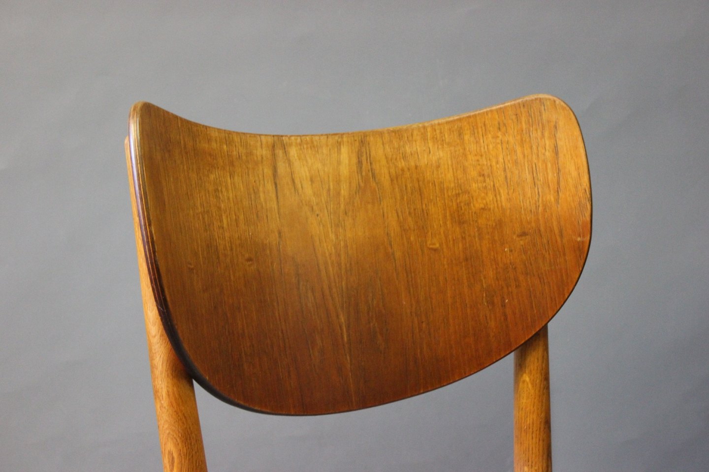 SolgtEt sæt af 4 spisestue stole designet af Nils og Eva Koppel i 1960erne. Stolene er af teak og polstret i lyst uld.
