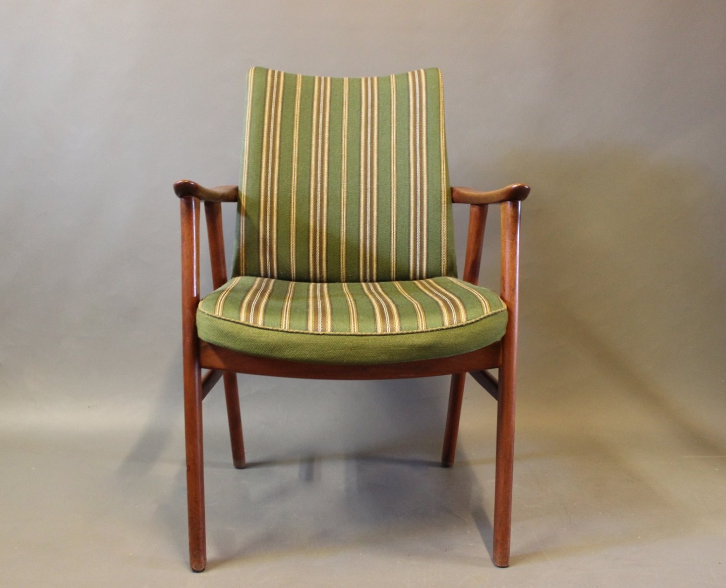 Armchair in teak and upholstered in green fabric of danish design from the 1960s. The chair is in great vintage condition.