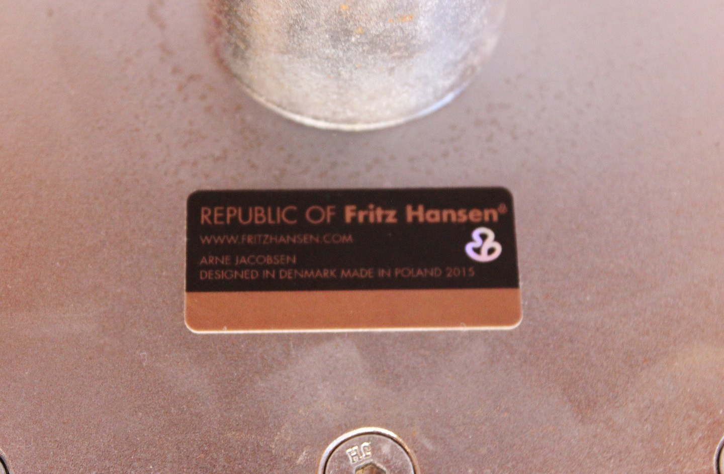 SoldSwan chair, model 3320, designed by Arne Jacobsen in 1958 and manufactured by Fritz Hansen in 2015. The chair is upholstered in walnut elegance leather.