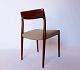 SolgtSæt af 6 spisestuestole, model 77, i teak og lysegråt læder designet af N. O. Møller og fremstillet af J.L. Møller Møbelfabrik i 1960erne.