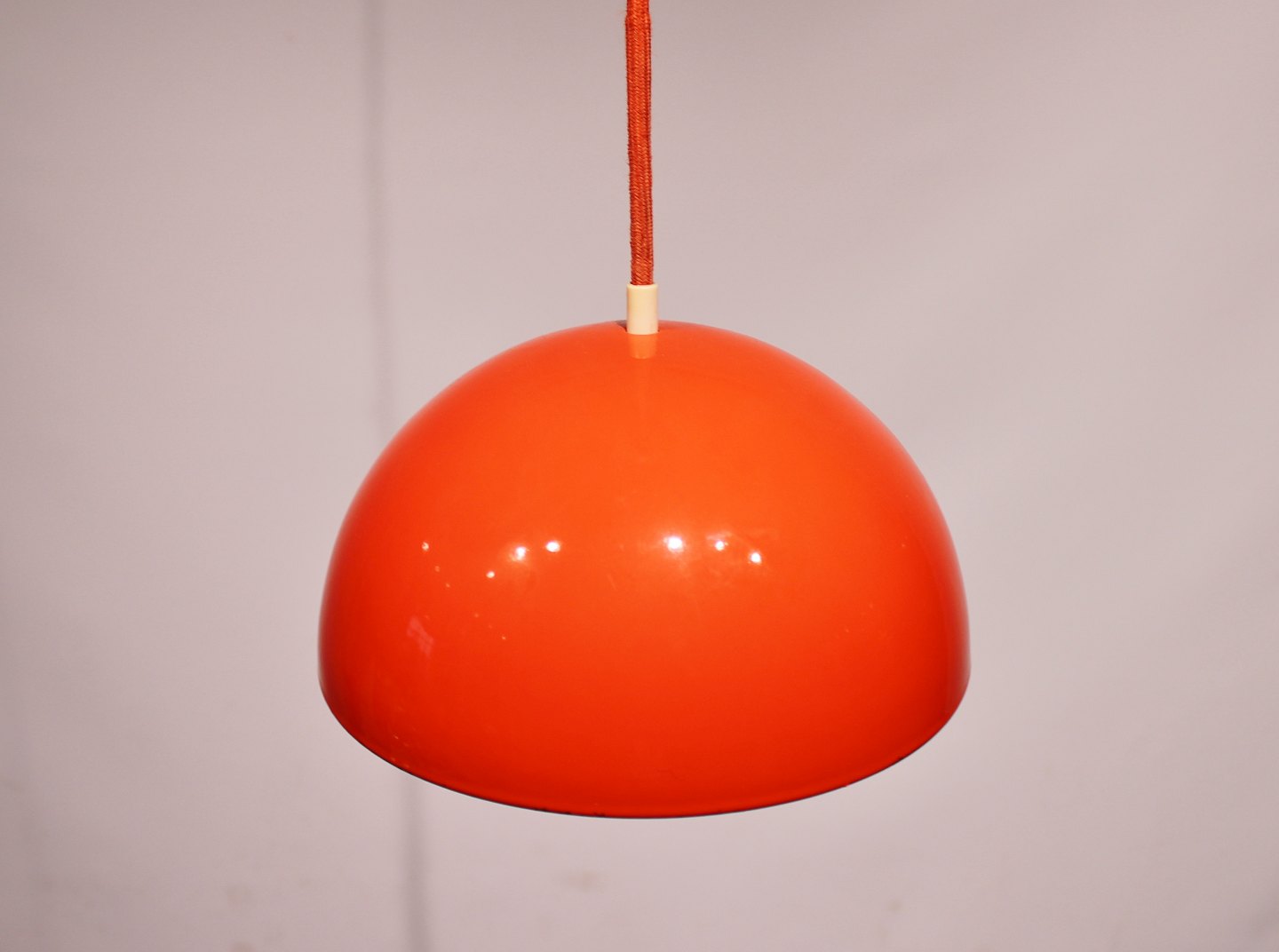 SoldA pair of Flowerpot, model VP1, pendants in orange designed by Verner Panton in 1968 and manufactured in the 1970s. The lamps are in great vintage condition.