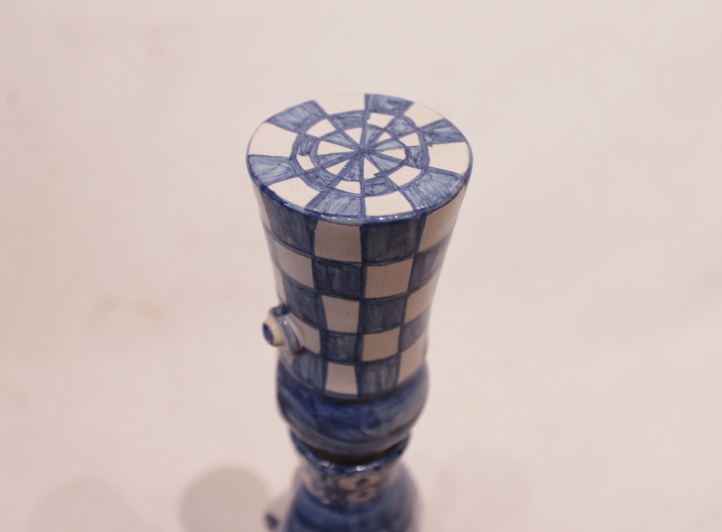 Keramik figur "Vinter", M23, fra serien "De fire årstider" designet af Bjørn Wiinblad. Denne figur er fra 1978 og er dekoreret i hvide og blå farver.