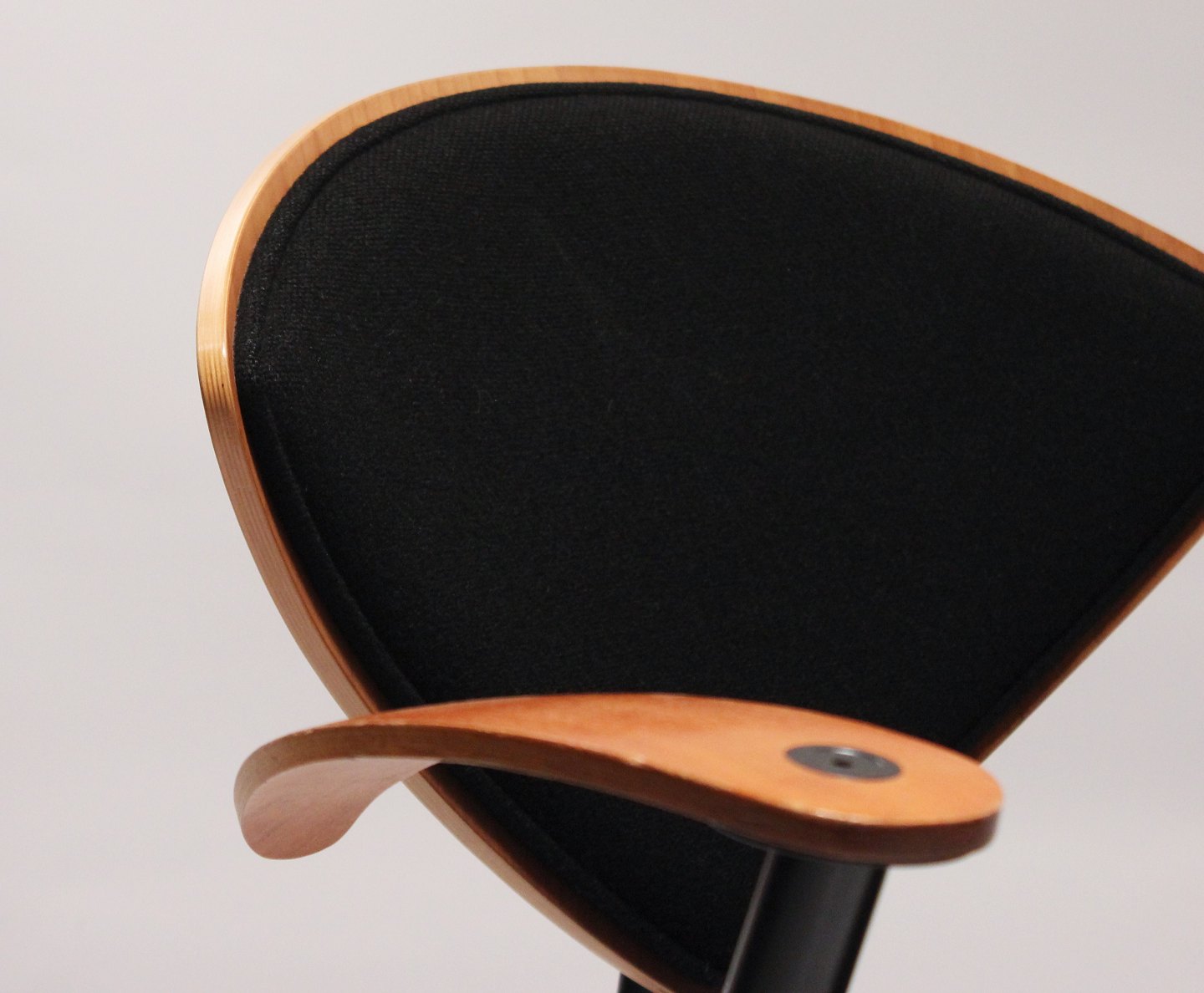 SoldConference chair with armrests of oak and black fabric, model Nimbus, by Bent Krogh. The chair is in great vintage condition and we have 7 in stock.
