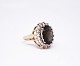 Ring of 14 ct. gold decorated with small clear stones and a large topaz.