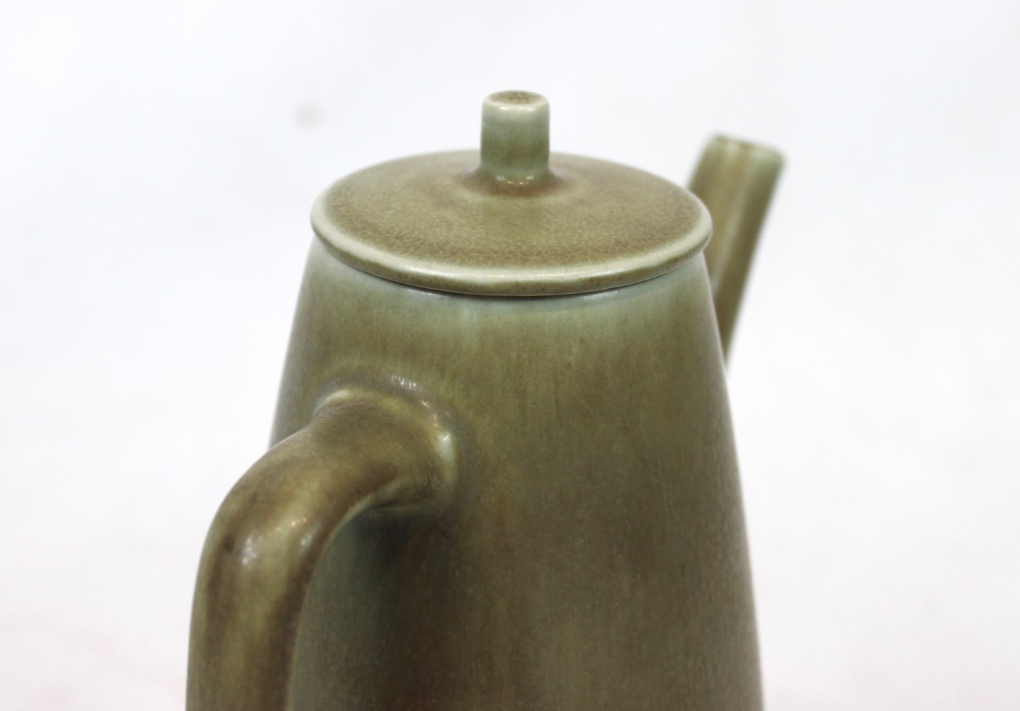 SoldCeramic jug with dark green glaze by Palshus and numbered, 1187. The jug is in great vintage condition.