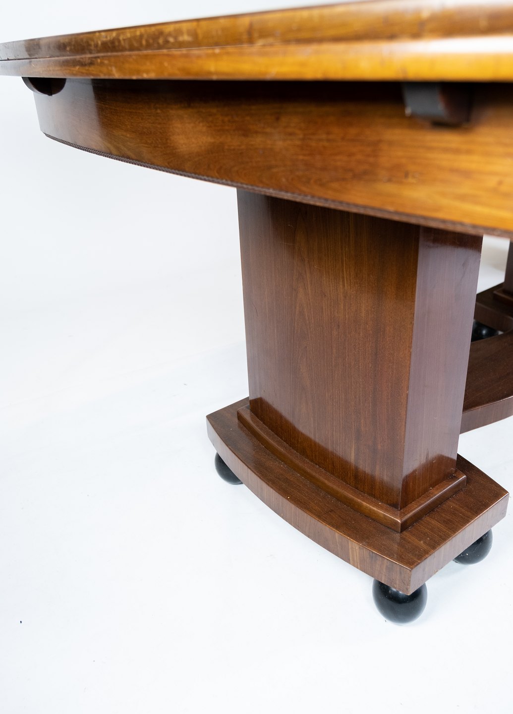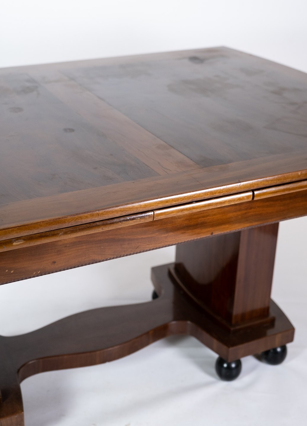 Antikt spisebord i mahogni og med hollandsk udtræk fra 1920erne. Bordet er i flot brugt stand.