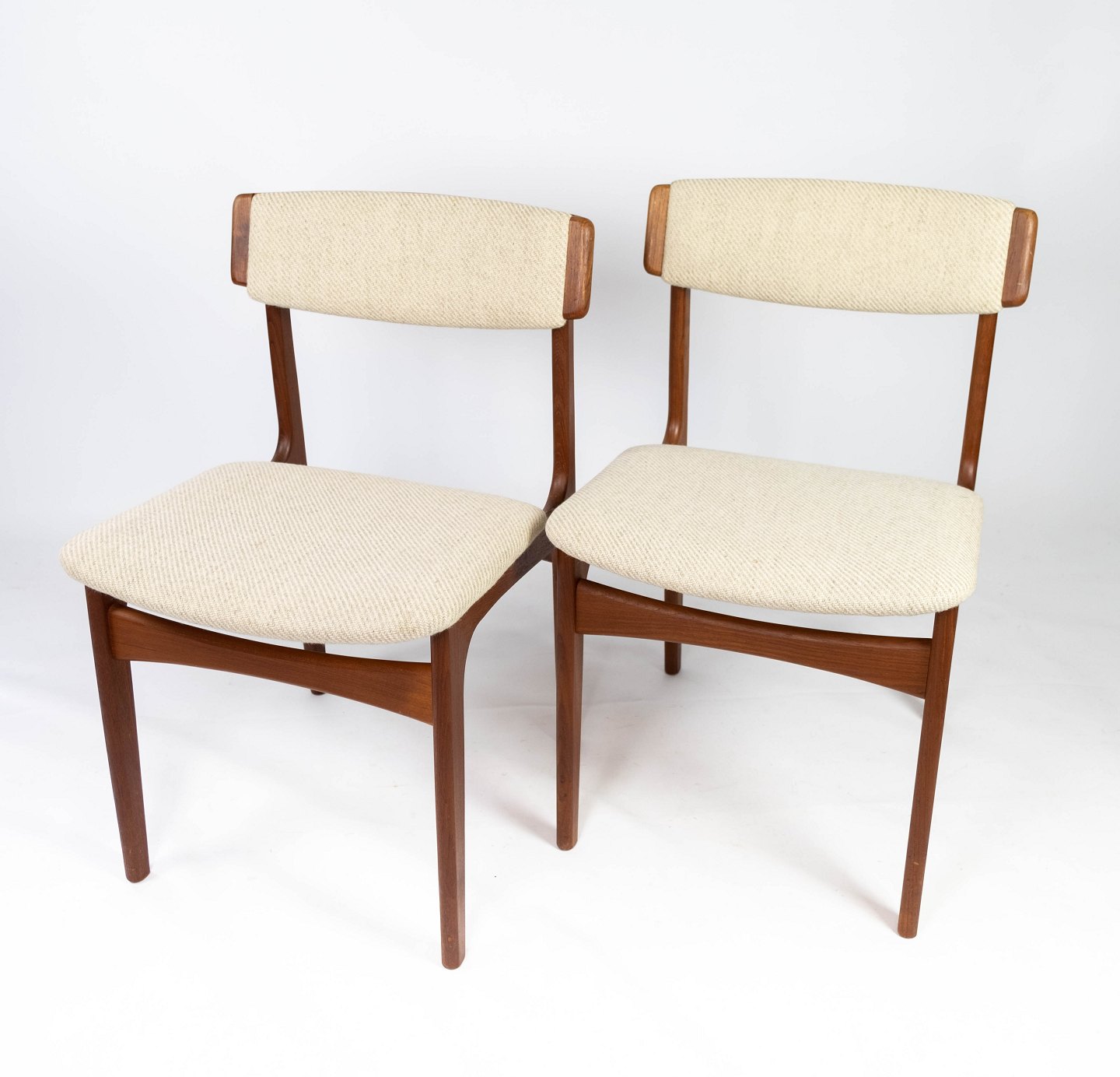 Set of two dining room chairs in teak and upholstered with light Hallingdal wool fabric of danish design from the 1960s. The chairs are in great vintage condition.