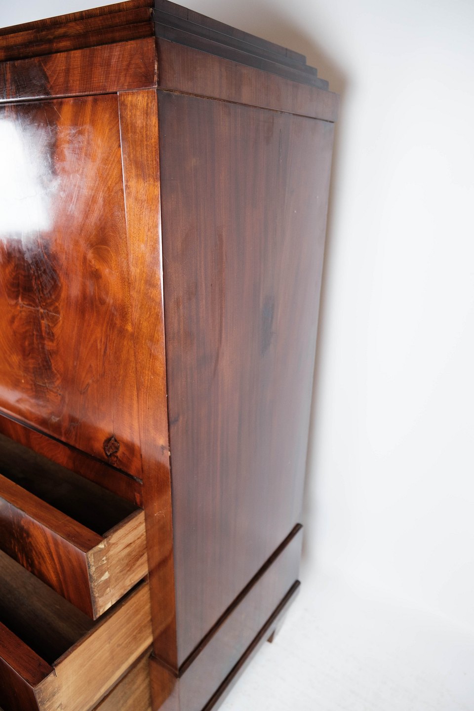 SolgtEmpire sekretær af mahogni med intarsia, i flot antik stand fra 1840.