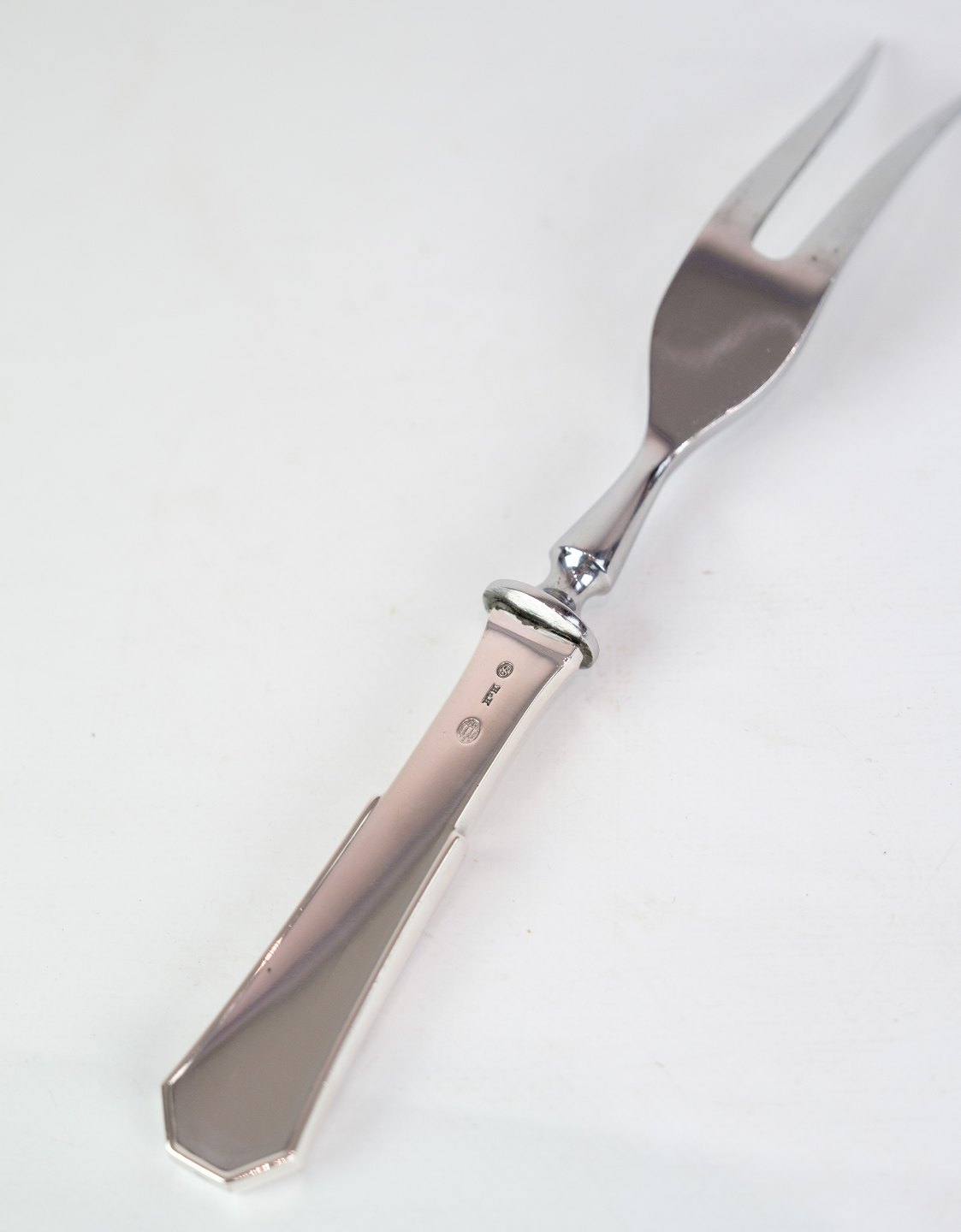 Roasting fork by Hans Hansen heirloom silver no. 8 of partially rusted stainless steel of very good quality.
