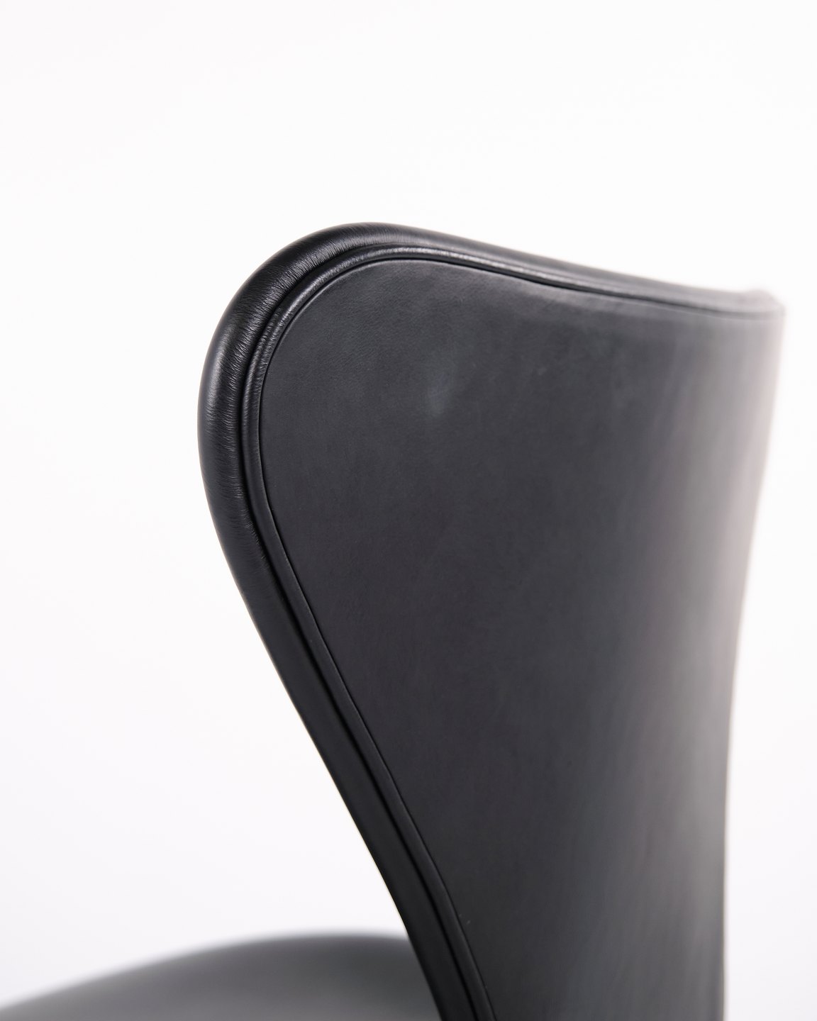 Syver Kontorstol - Model 3117 - Sortlæder - Drejefunktion - Arne Jacobsen - Fritz Hansen