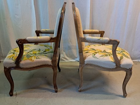 2 Armstole i massivt bøgetræ med broderet betræk, fra 1950erne.