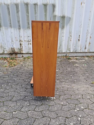 Reol i fineret teaktræ, fra 1970erne.