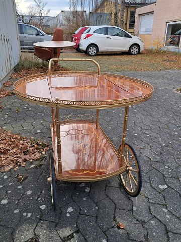 Barbord i fineret mahogni og metal, fra 1980erne.