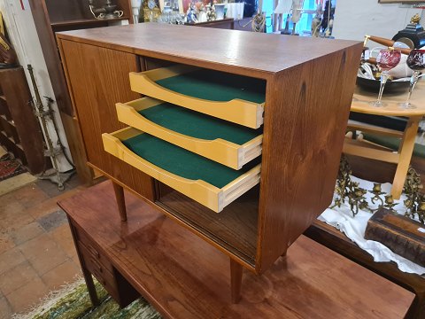 Kai Kristiansen skab m. skydelåger udført i fineret teak. Fremstillet ca. 1960'erne.