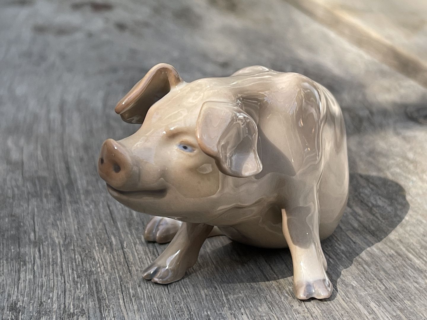 Seated porcelain pig, designed by Dahl Jensen for Bing & Grondahl, form no. 1582. Signed DJ in monogram. 2nd quality.
