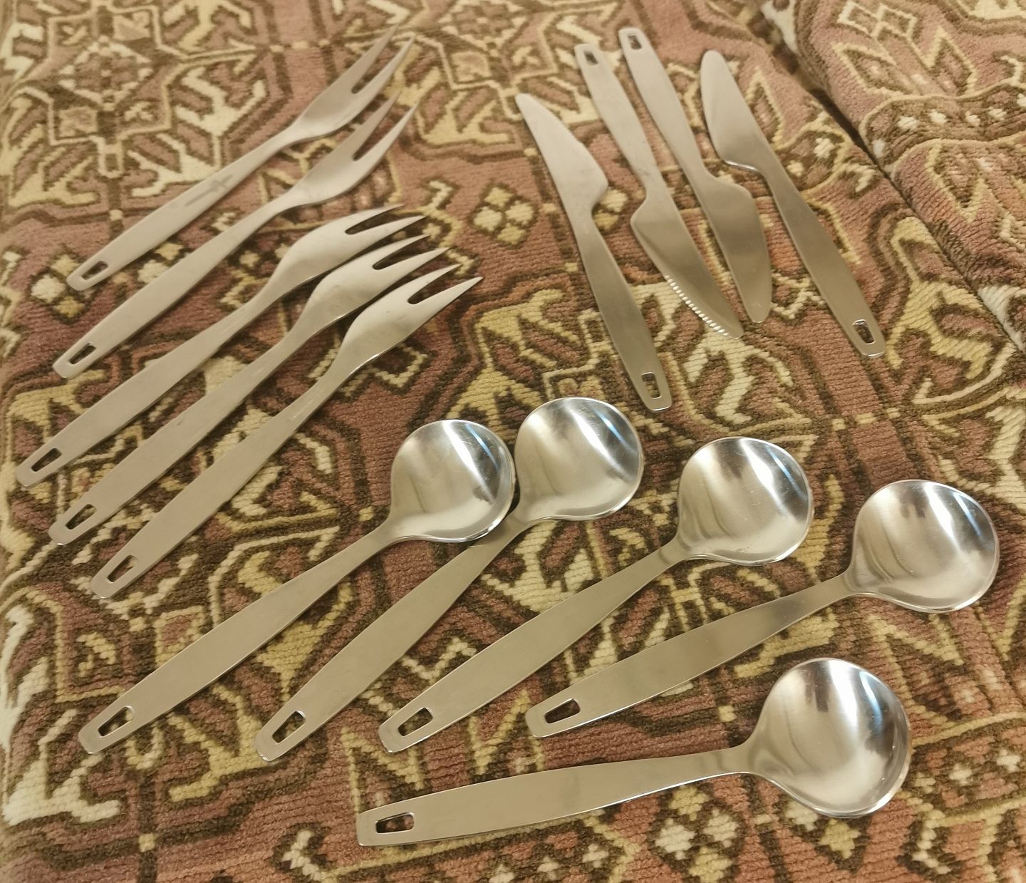 Steel cutlery Stainless steel "Holiday" from Georg Jensen designed by Henning Koppel. All parts factory marked and in good condition.