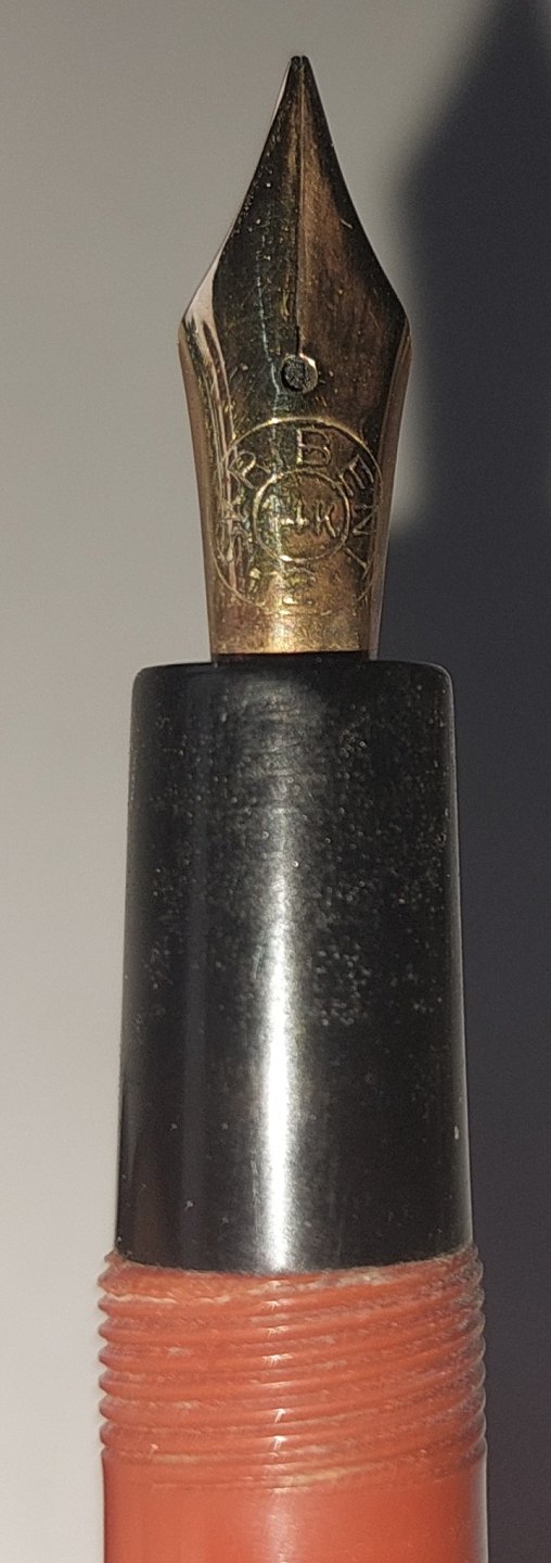 Koralrød Skribent Super 2 fyldepen. Fremstillet som bi-produkt (sub-brand) hos Penol i Danmark. Fremstillet omkring 1950. Fremstår I god stand uden skader eller reparationer. Fungerer ikke. Der skal indsættes ny gummisæk før end der kan påfyldes blæk igen. Ny gummisæk kan indsættes for et tillæg af d.kr. 200,00 Denne fyldepen er 12,5 cm lang