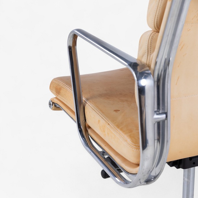 EA 219 - Højrygget kontorstol i patineret naturlæder på stel af stål. Mærket fra producent.