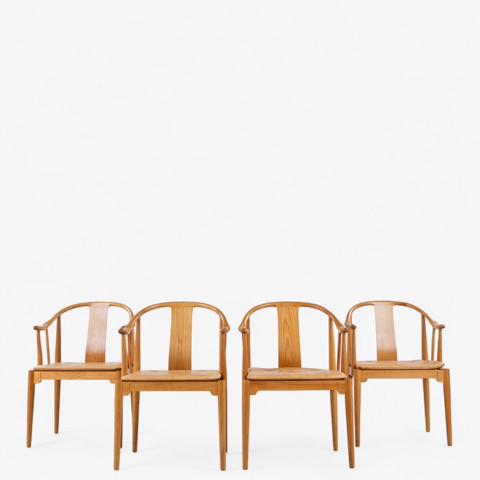 FH 4283 - Kinastol i kirsebær med hynde i patineret naturlæder. Mærket fra producent.