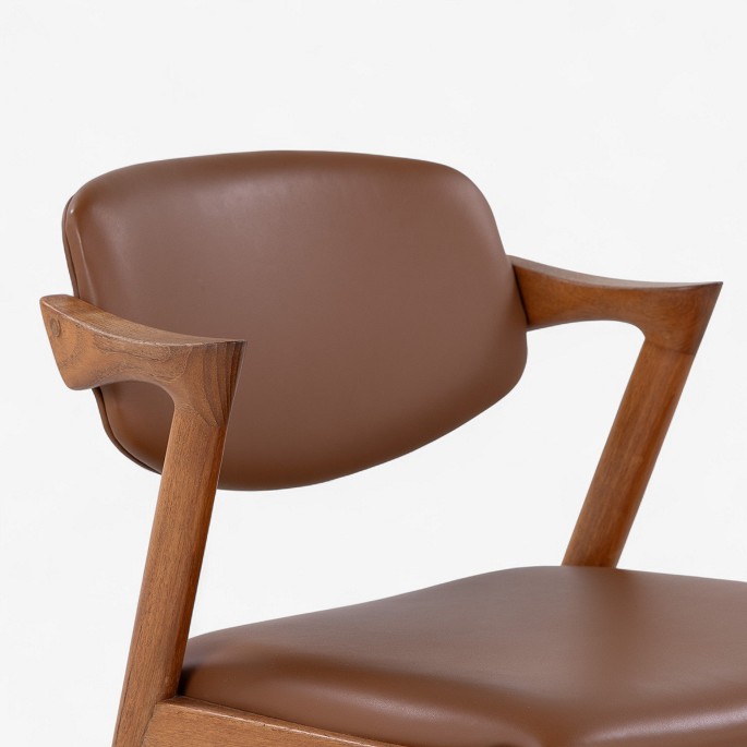 NO 42 - Set of 6 'Z-chairs' armchairs in teak with seat and back upholstered in newer Savanne semi-aniline leather (color: Walnut). Designed in the 1950s.