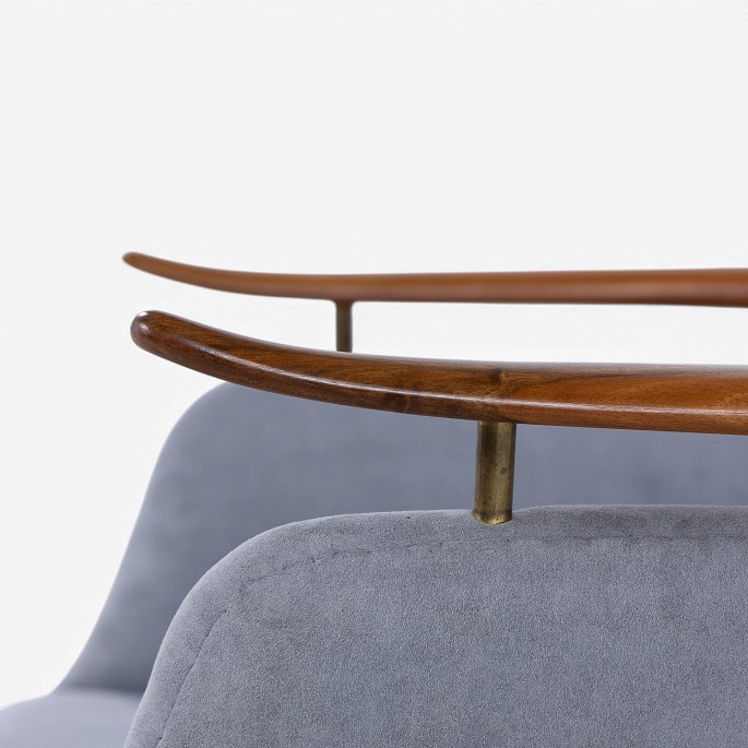 NV 53 - Lænestol i gråt 'Alcantara'-stof med stel i patineret valnød.