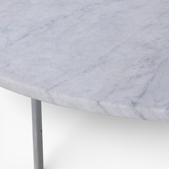 PK 54 - Rundt spisebord med lys flintrullet marmor-plade på stel af matforkromet stål. Formgivet i 1963.
